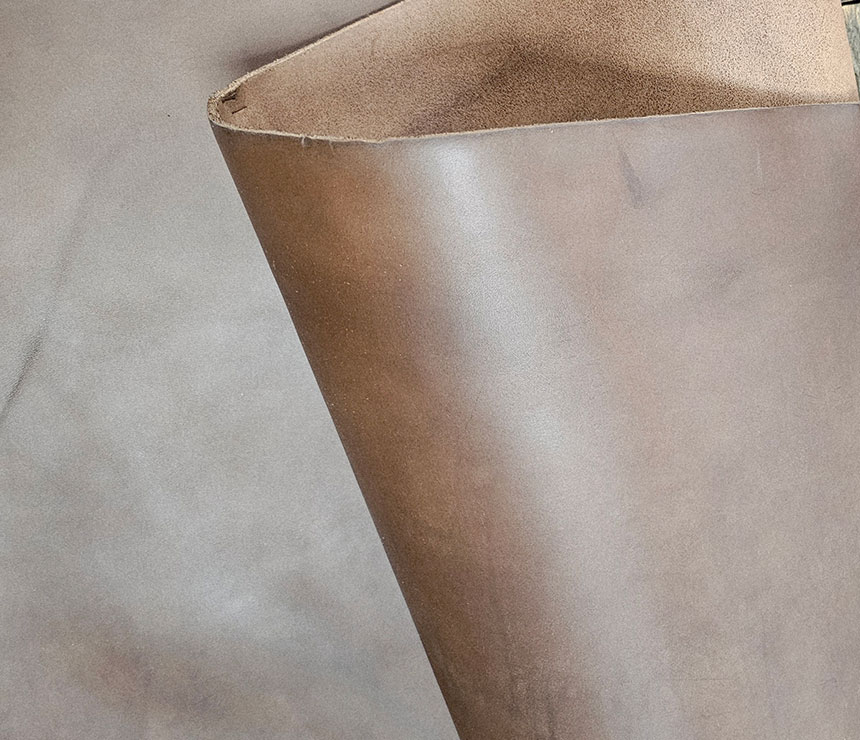 After listening to our customers’ needs and wants, we developed the H Latigo. H Latigo is a hybrid of Traditional Harness and English Bridle. With the hand of our beautifully crafted English Bridle and cut of our luxurious Traditional Harness, the H Latigo is a perfect blend that creates a less sensitive grain like the English Bridle. We apply our time tested English Bridle finish along with the highly prized Harness leather crust to bring this leather to market. Sold by the side and back. Average side is 24-27 sq. ft. and average black is 18-20 sq. ft. H Latigo is available in a range of heights and weights from 2-3 oz. to 12-14 oz. Samples available upon request. Custom splitting and refinishing available at an additional cost.